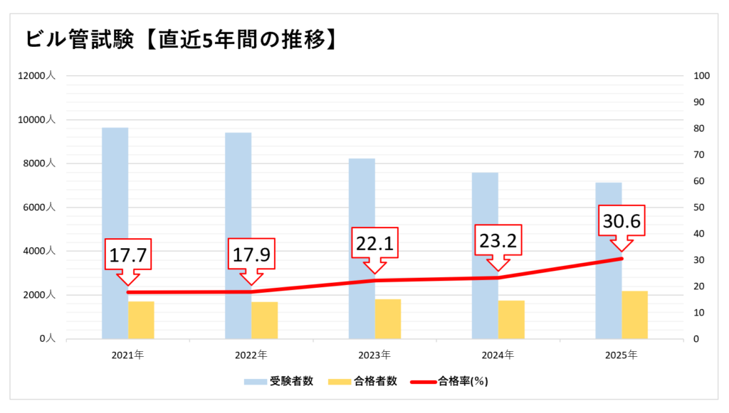 次は、直近5年間(2025年~2021年)の合格率について解説します。